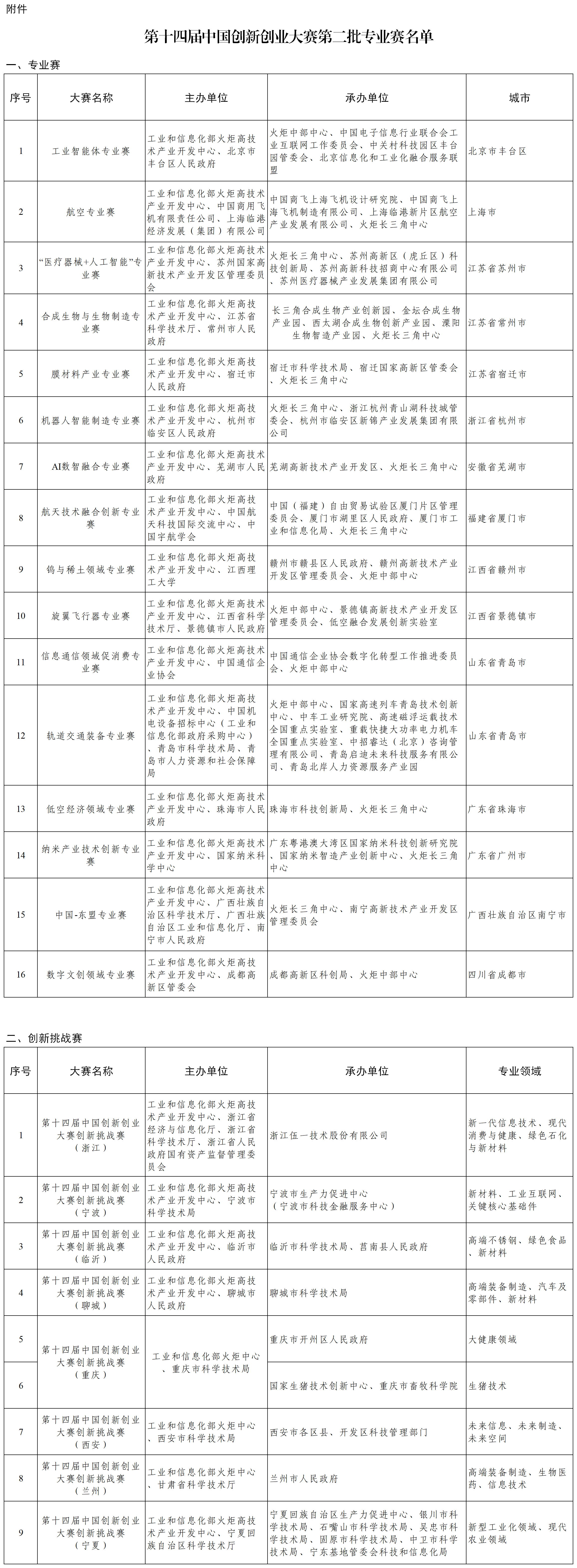 附件:第十四届中国创新创业大赛第二批专业赛名单